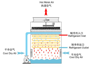 密闭式冷却塔和开放式冷却塔的不同处在于冷却塔的填充材.密闭式的热交换器使用铜管来代替开放式的PVC材料...